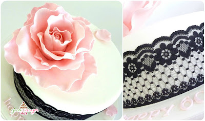 'Giant Bloom' with lace trim ~for Roz' 60th Birthday Cake